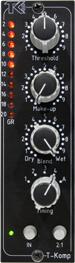To make it as useful as possible the T-Komp has two ratio ranges. The first one goes up to 20:1, perfect for instrument tracking and smashing drums etc., the second one is a more narrow range which makes it more suitable for bus compression. The RMS detector has five settings, four from fast to slow where number four, the slowest, is similar to the old 160VU. The fifth position is a program dependent adaptive mode. It is also equipped with a blend control for easy parallel compression. The T-Komp is the perfect workhorse both for tracking and mixing.